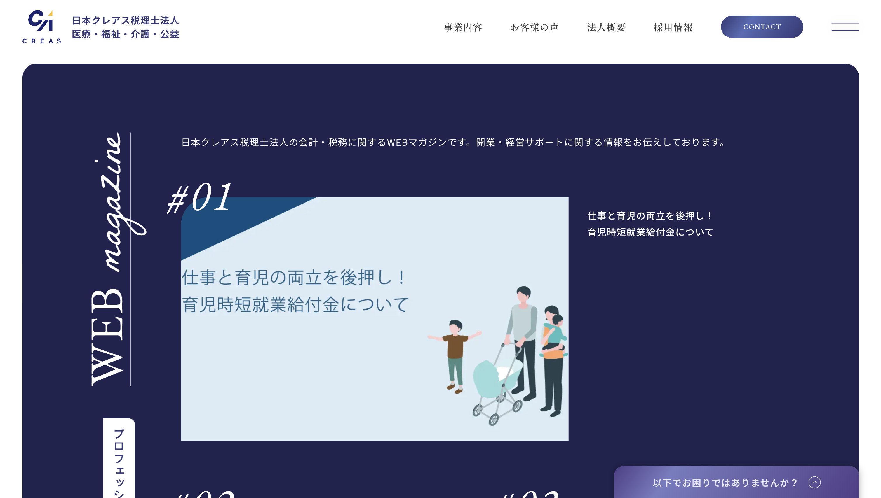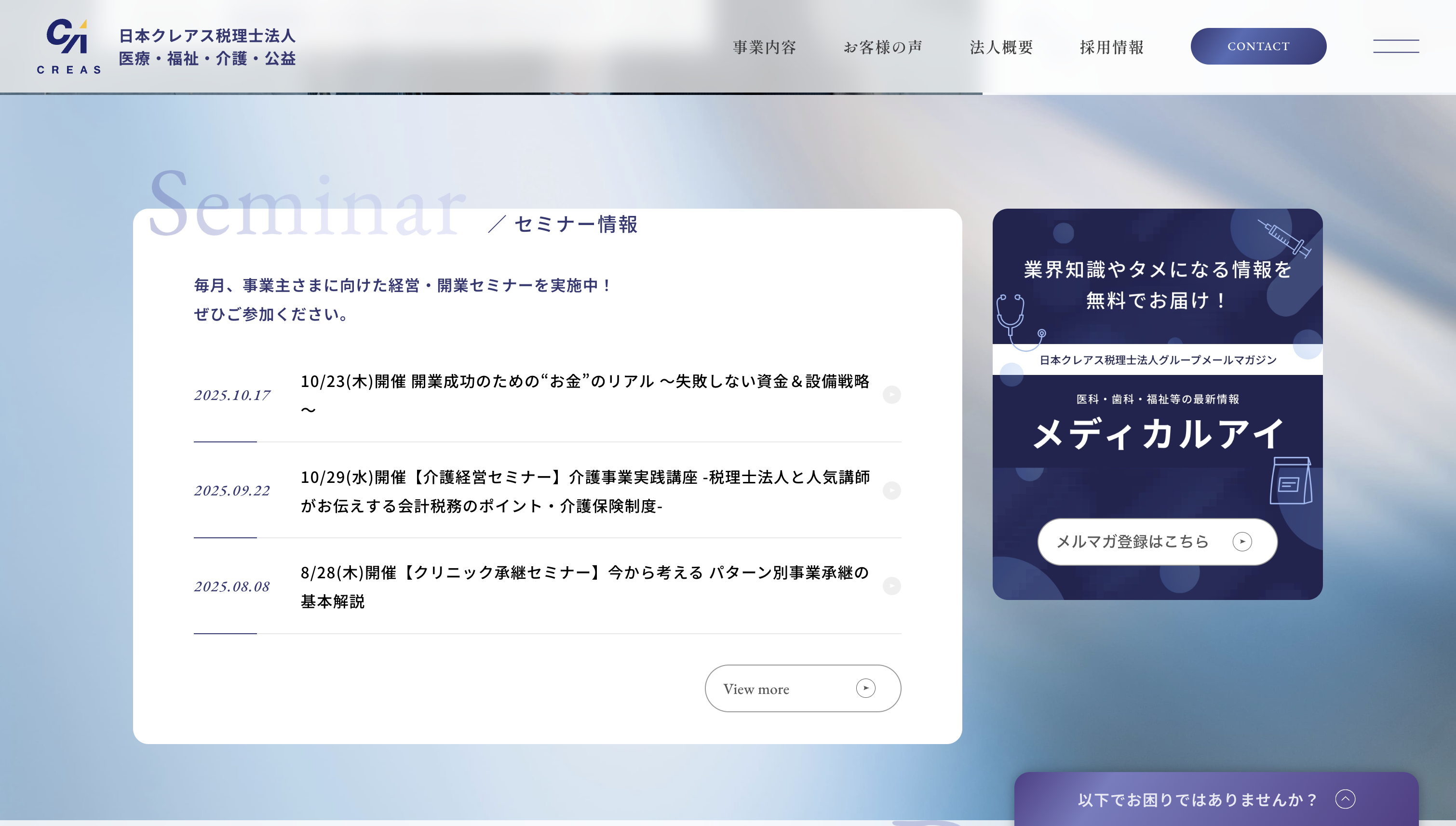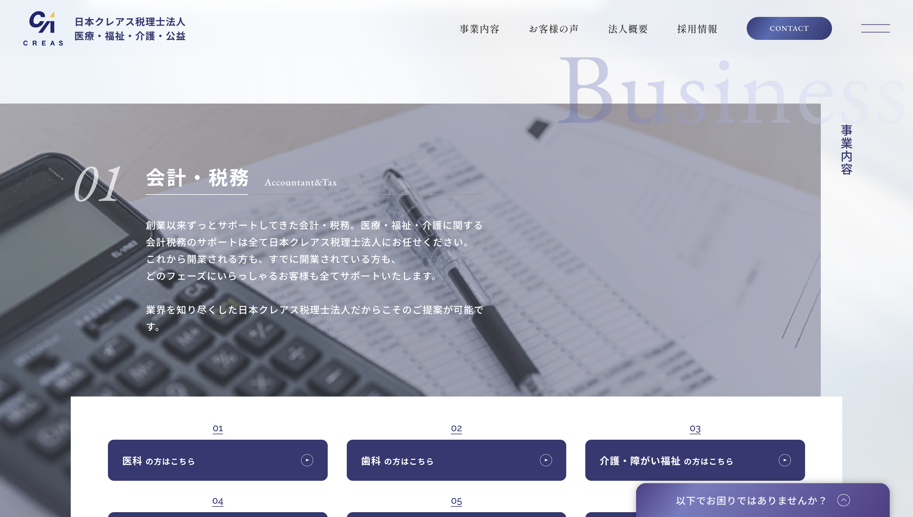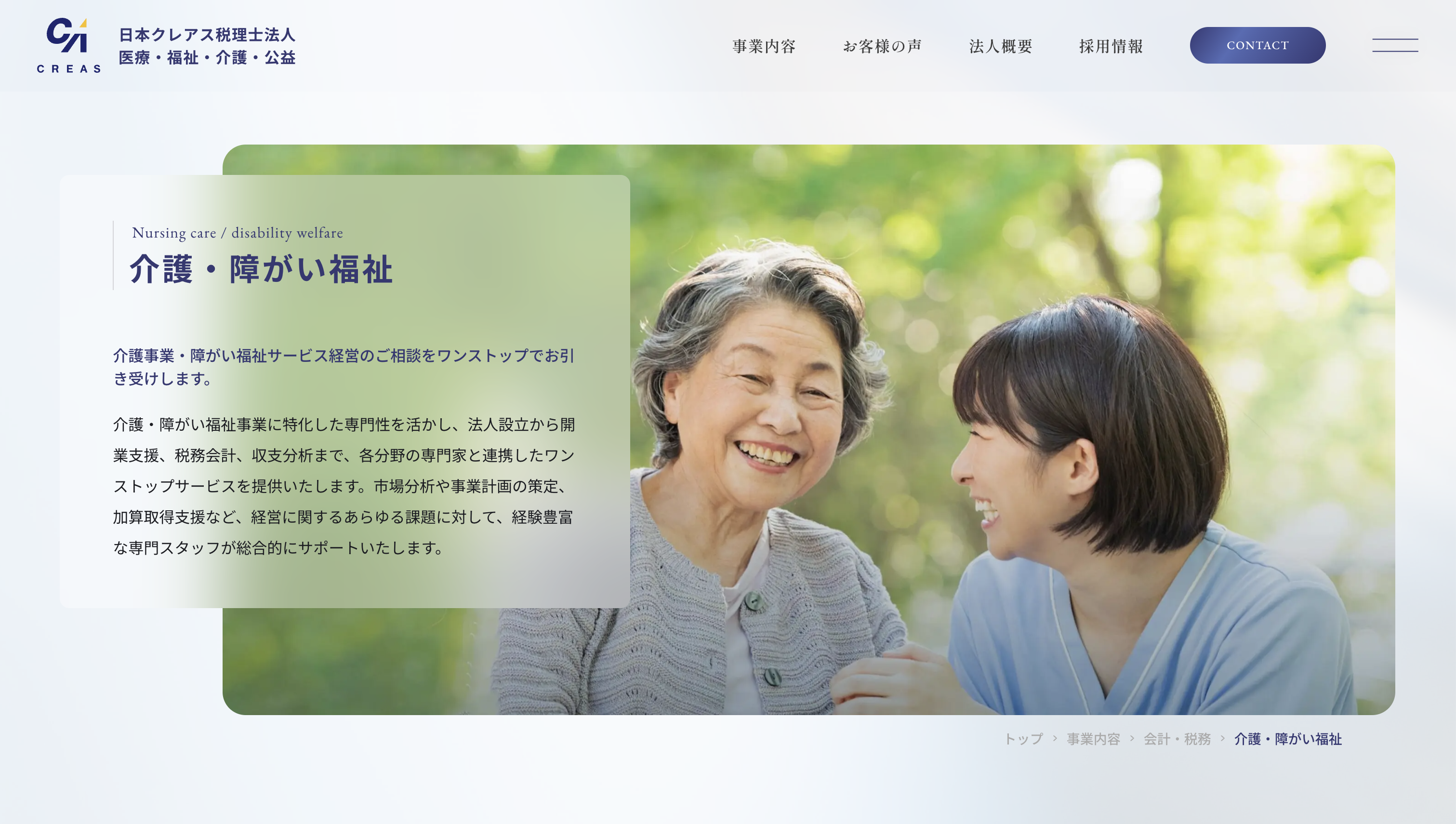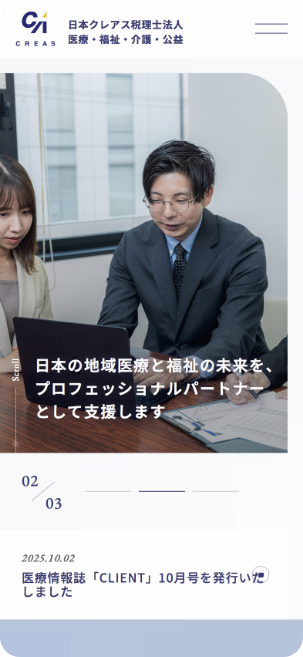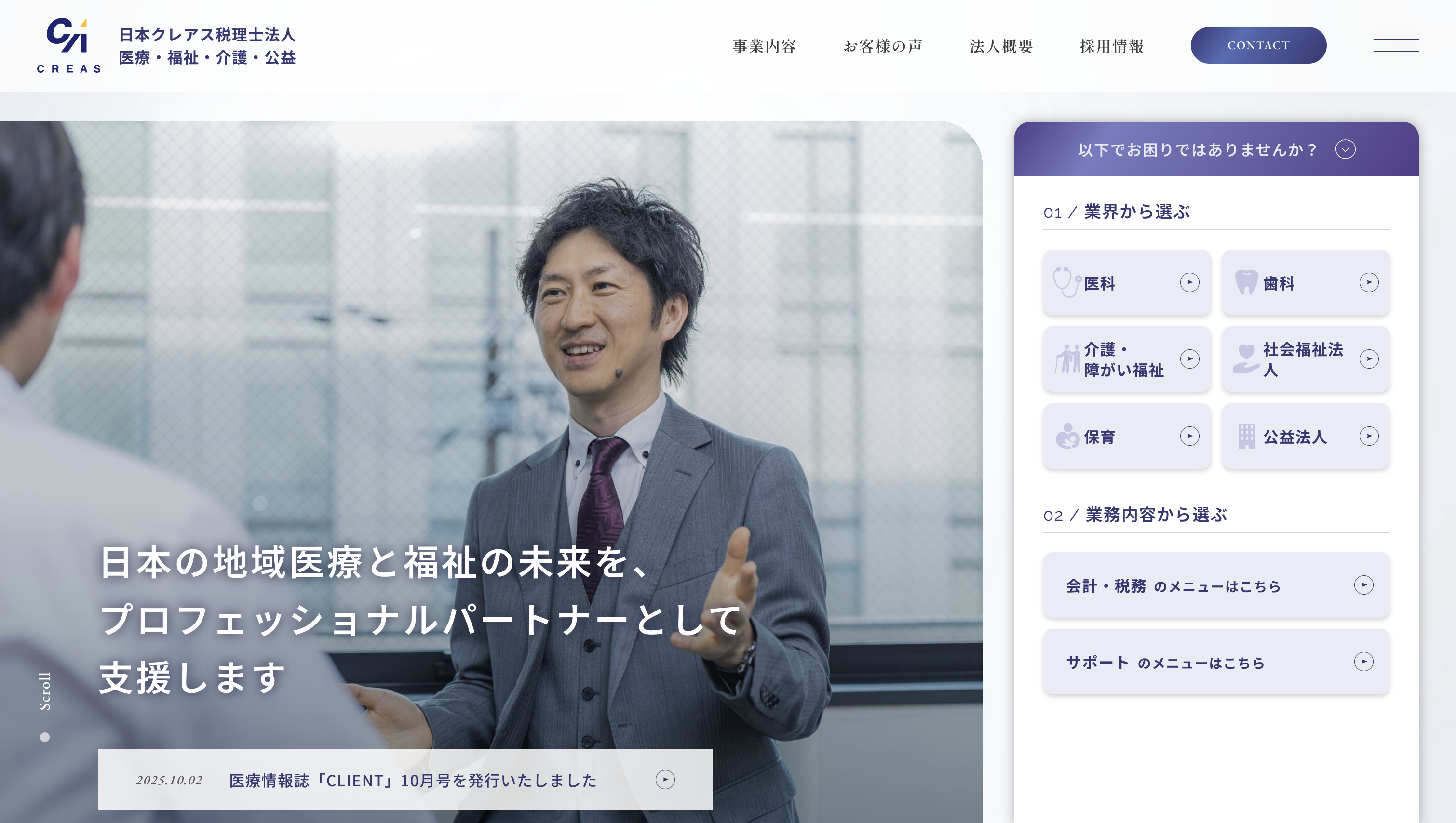 全国に拠点を持つ税理士法人グループ「日本クレアス税理士法人」の医療・福祉・介護・公益法人のお客様に特化した事業部サイトをリニューアルいたしました。