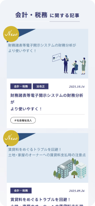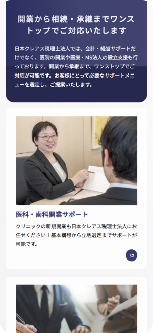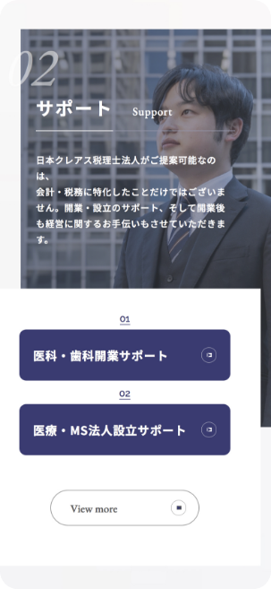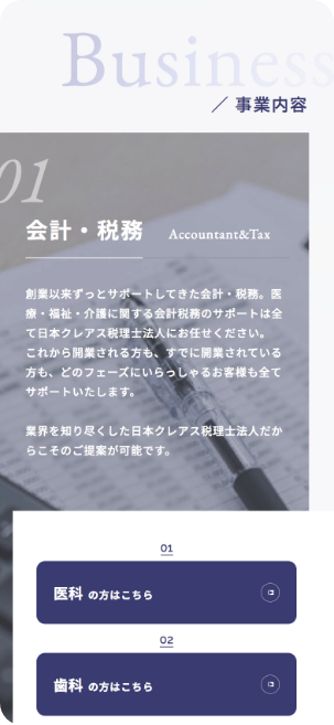 大手税理士法人グループの1事業部として、信頼感と誠実さを表現する爽やかなテイストのデザインを目指しました。