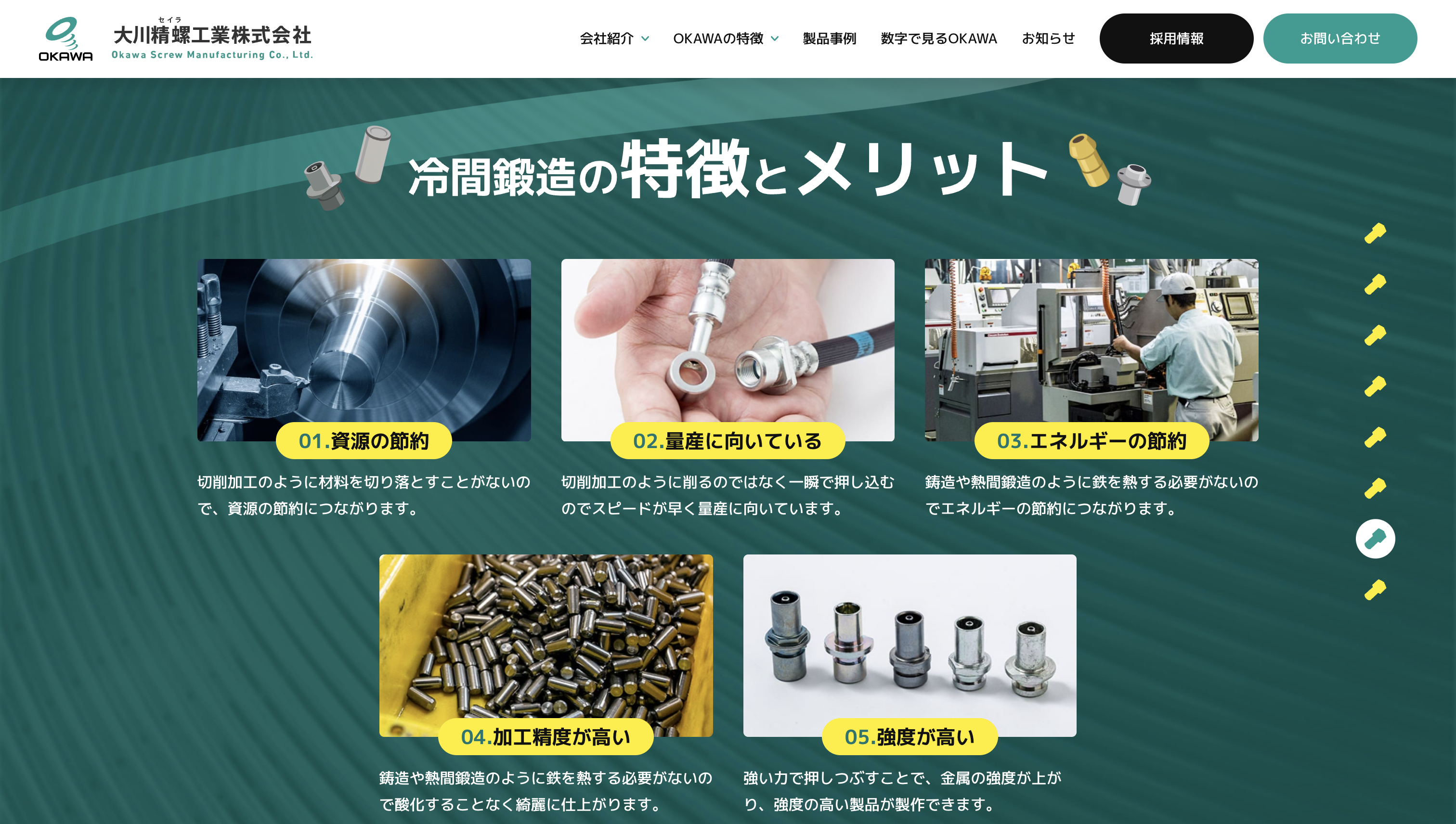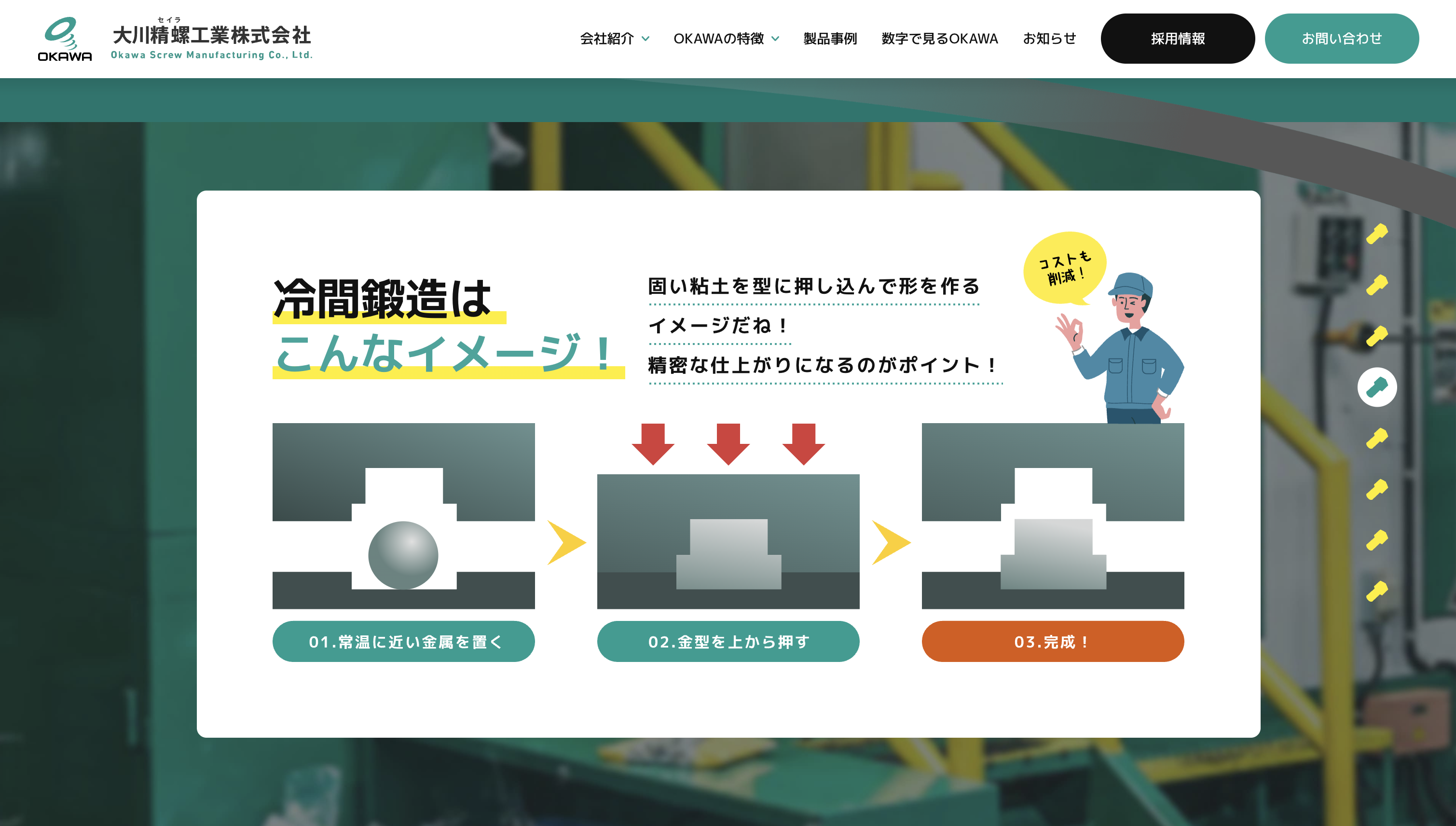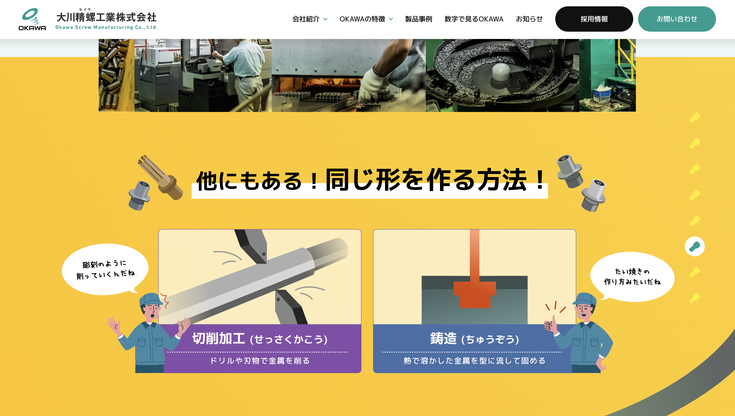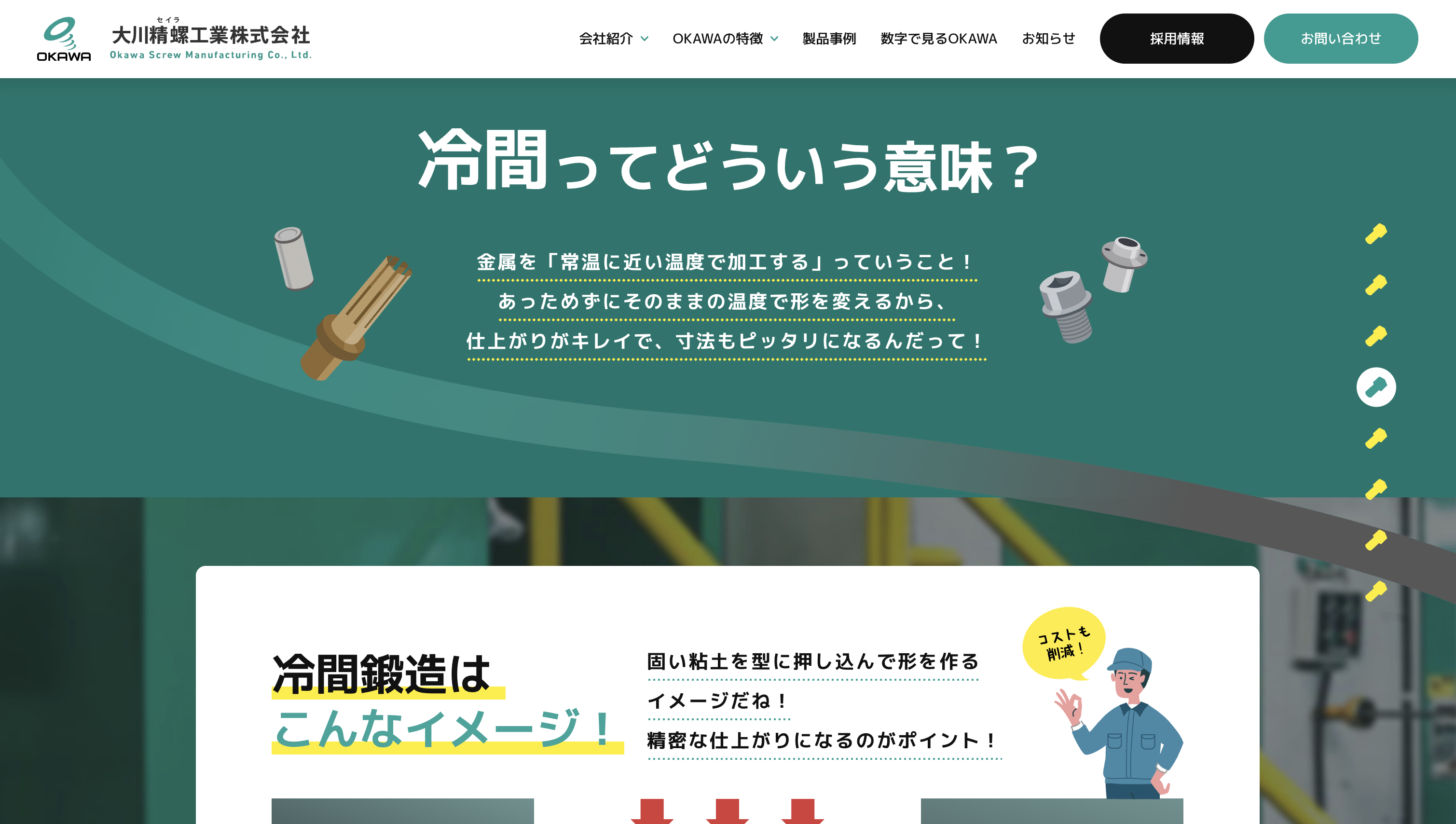 大川精螺工業株式会社様は、冷間鍛造技術を強みとし、自動車部品をはじめとした精密金属部品の製造を通じて、日本のものづくりを支えてきたメーカーです。長年にわたり培ってきた技術力と品質へのこだわりを大切にしながら、次世代を担う人材の採用にも力を入れています。