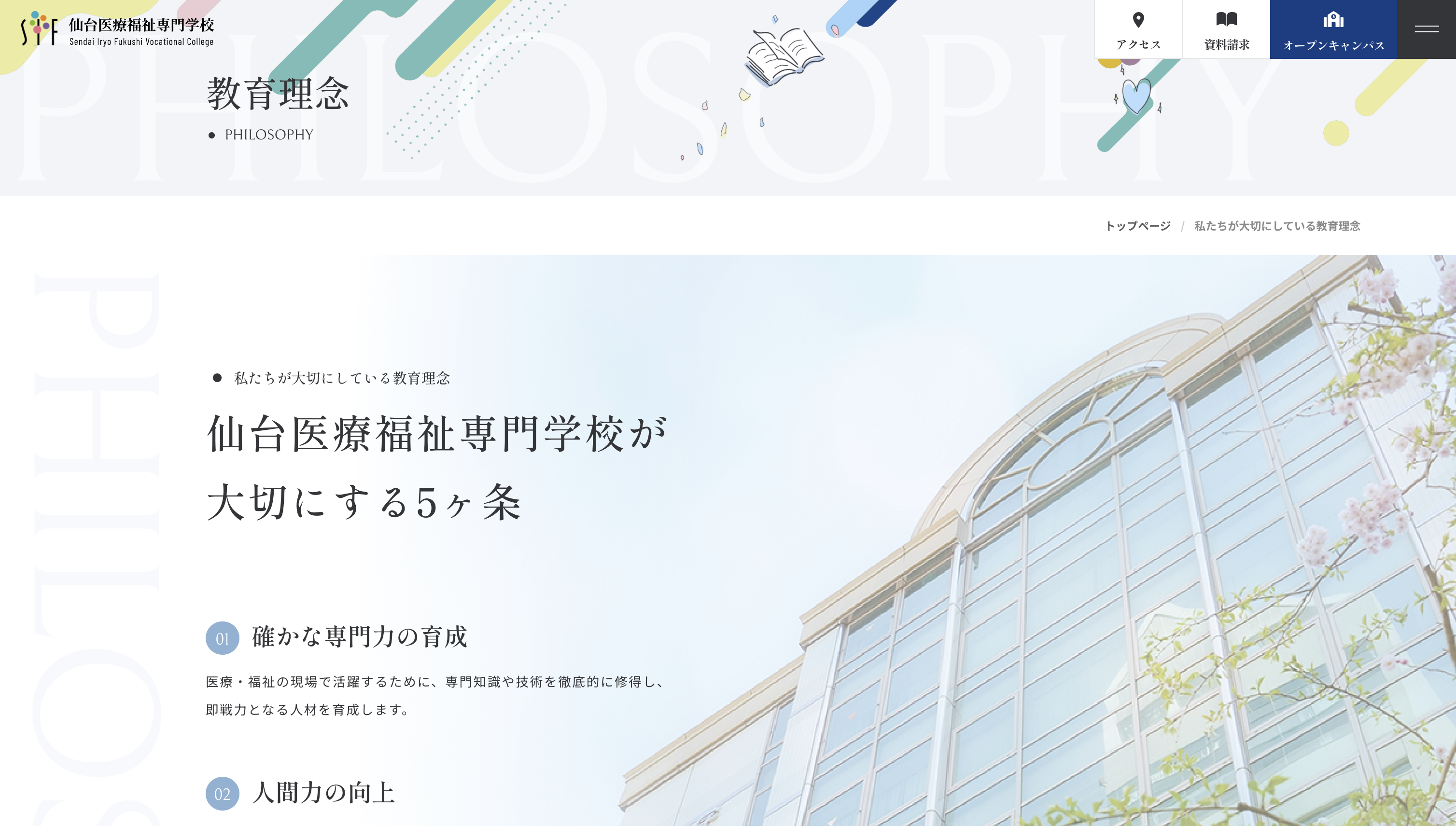 温かさだけでなく、高度な専門性との両立を目指す教育姿勢が伝わるようにデザインしました。
