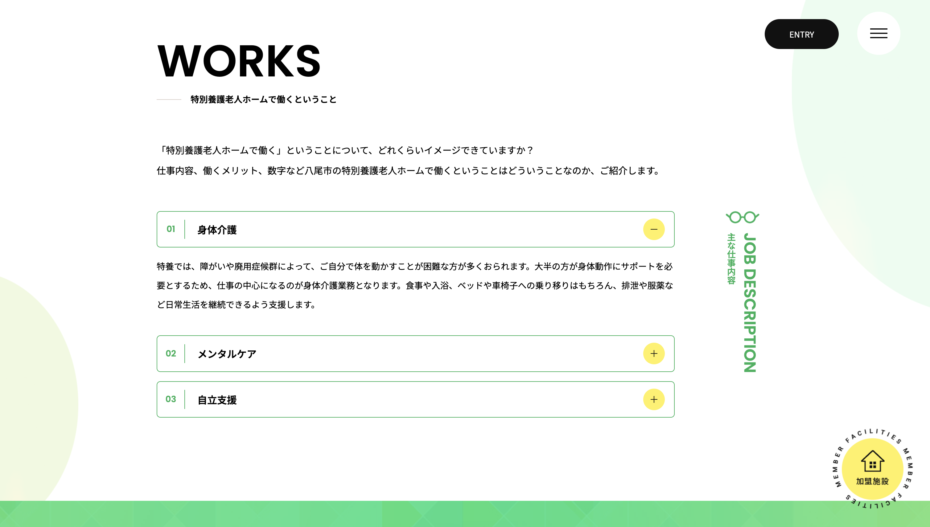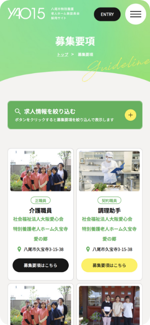 こちらのサイトは15施設分の募集要項と、連携されたエントリーフォームが特徴的。各募集要項の詳細ページ下部「エントリーフォームへ」をクリックすると、各募集要項の情報がすでに選択された状態のフォームへと遷移します。ユーザーの使いやすさ、利便性を考慮した仕様を心がけました。