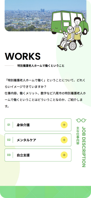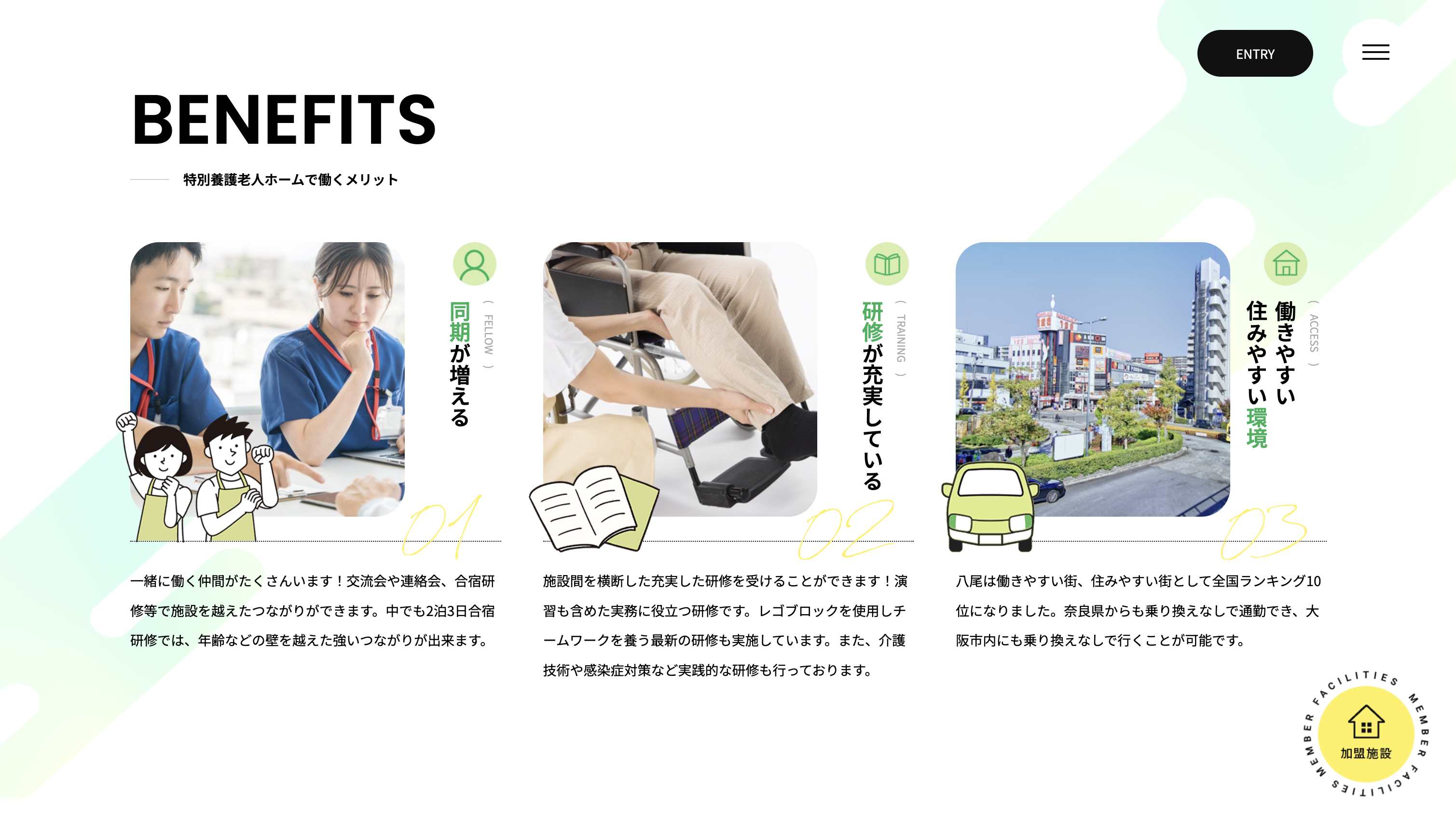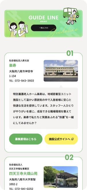 複数の施設の採用情報を掲載するポータブルサイトのような採用サイトを制作
